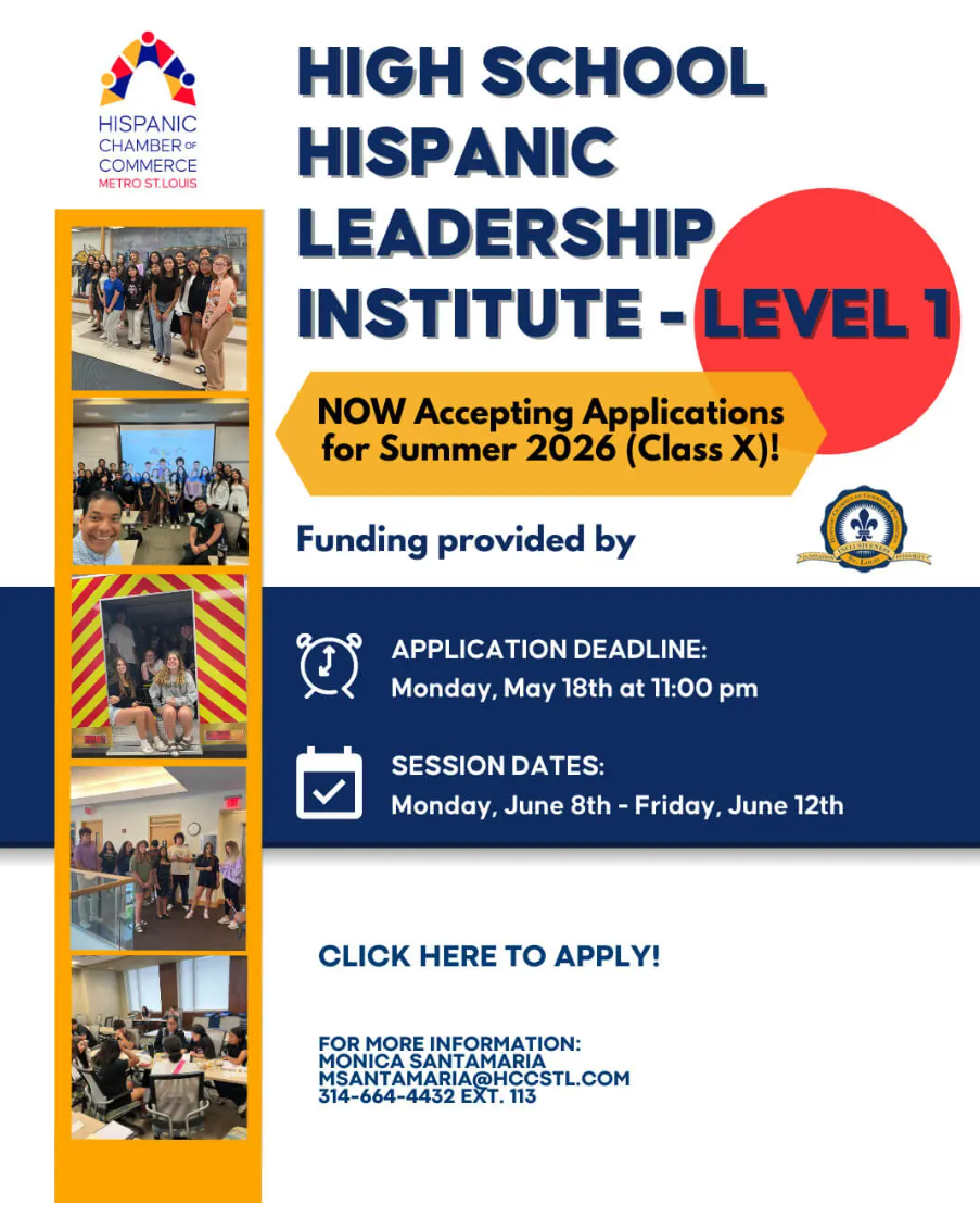 The Hispanic Chamber of Commerce of St. Louis Foundation has established the Hispanic Leadership Institute for high school (10th-12th grade) students as a select program for 25-30 individuals to develop leadership skills and give back to the St. Louis community.